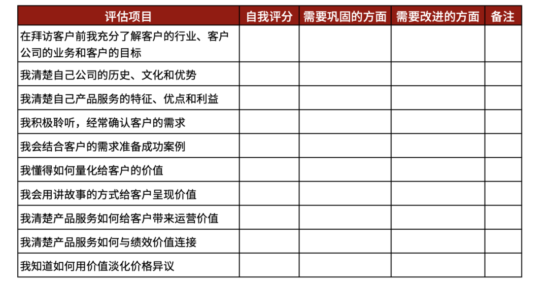 所以,销售人员要清楚客户的绩效目标和相应的绩效KPI指标,客户中谁对这些目标负责,然后向客户展现你的产品和服务对客户达成绩效目标的好处。这一点在上一讲的目的穿透中已经说明。